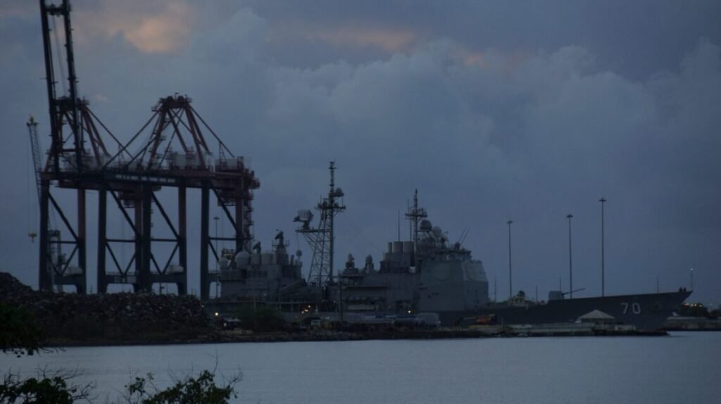 El crucero lanzamisiles USS Lake Erie (CG-70), de la clase Ticonderoga, fue avistado el pasado lunes en un muelle de *Ponce, al sur de Puerto Rico, como parte del creciente despliegue de unidades militares estadounidenses en la región para combatir el narcotráfico en el mar Caribe.