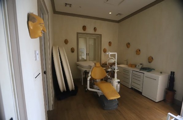 Tal vez la foto más inquietante es la de una especie de sala de operaciones de dentista con varias máscaras de rostros de hombres colgadas de las paredes. Tal vez pudo ser de uso, según indica The New York Times, de la última novia de Epstein, Karyna Shuliak, que ejercía como odontóloga.
