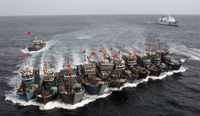 Las imágenes muestran parte de la Flota Pesquera de Aguas Distantes de China, una maquinaria industrial descomunal que no solo merodea las zonas económicas exclusivas de Perú, sino que también presiona —y muchas veces viola— las de Ecuador, Argentina, Chile y otras naciones sudamericanas. Su tamaño es tal que, según registros internacionales, sus concentraciones de barcos pueden observarse desde el espacio.